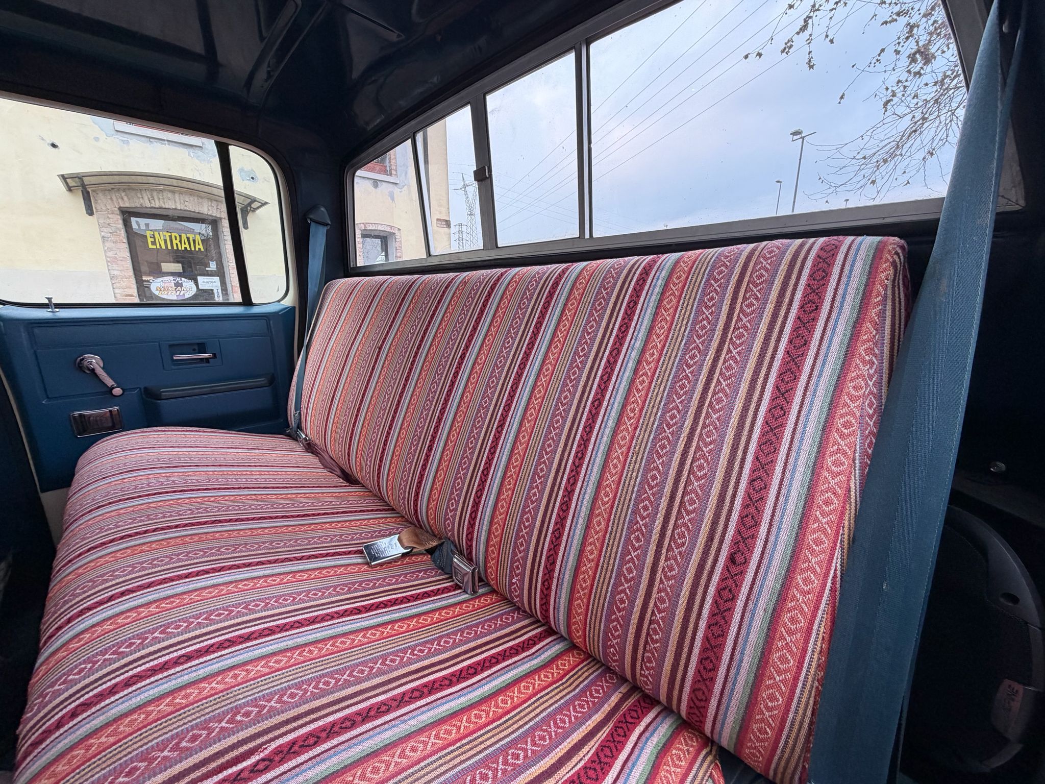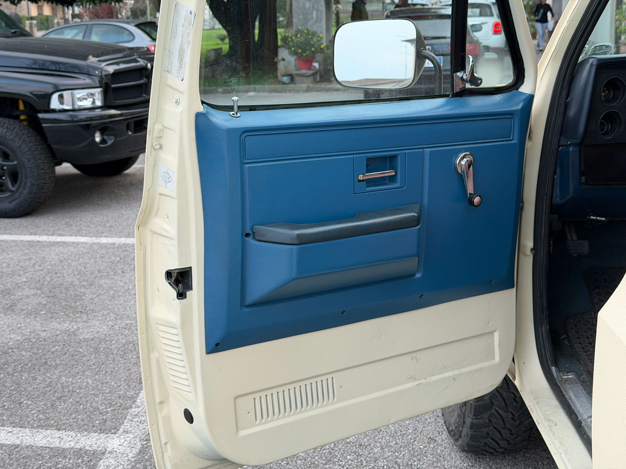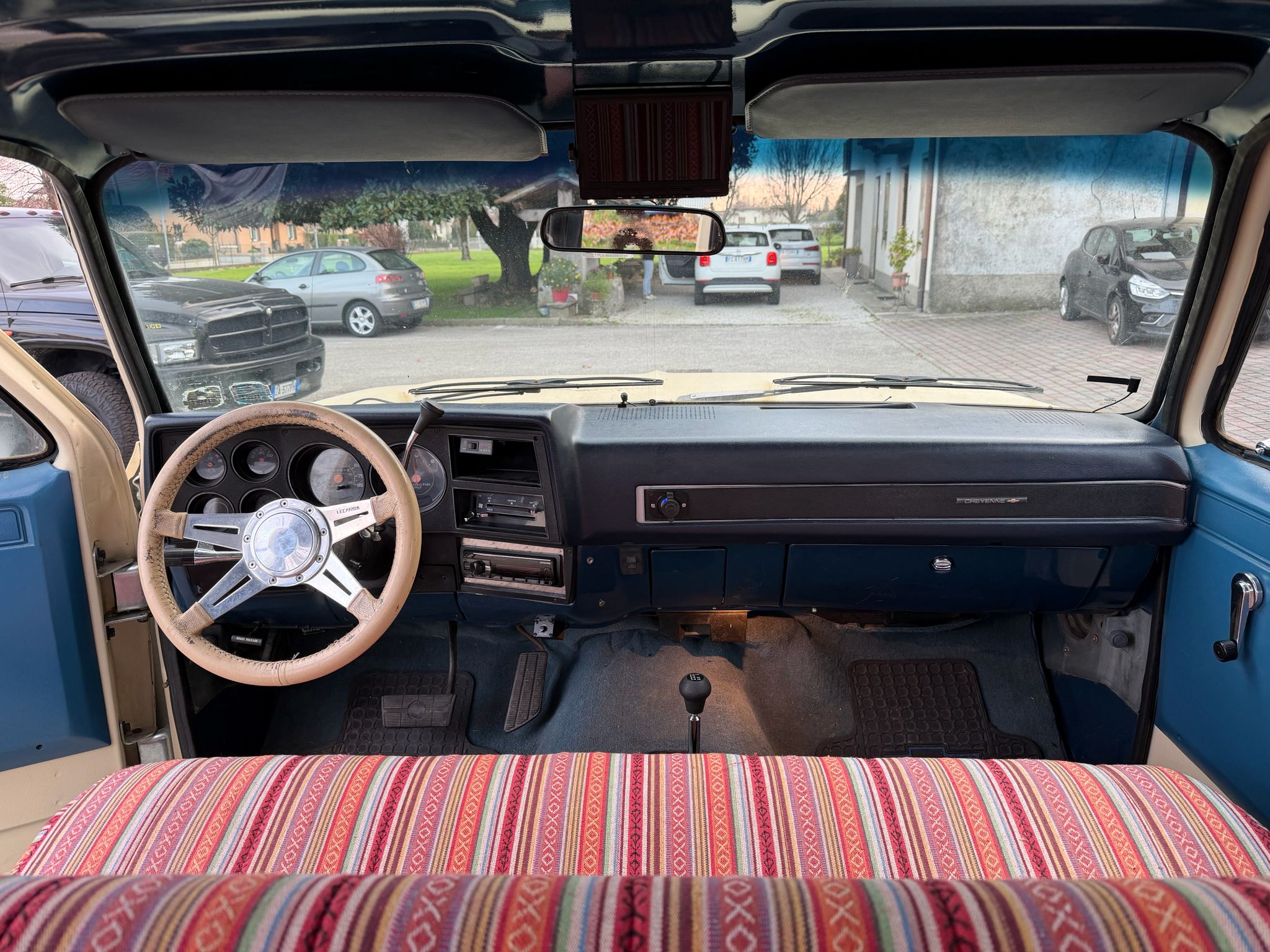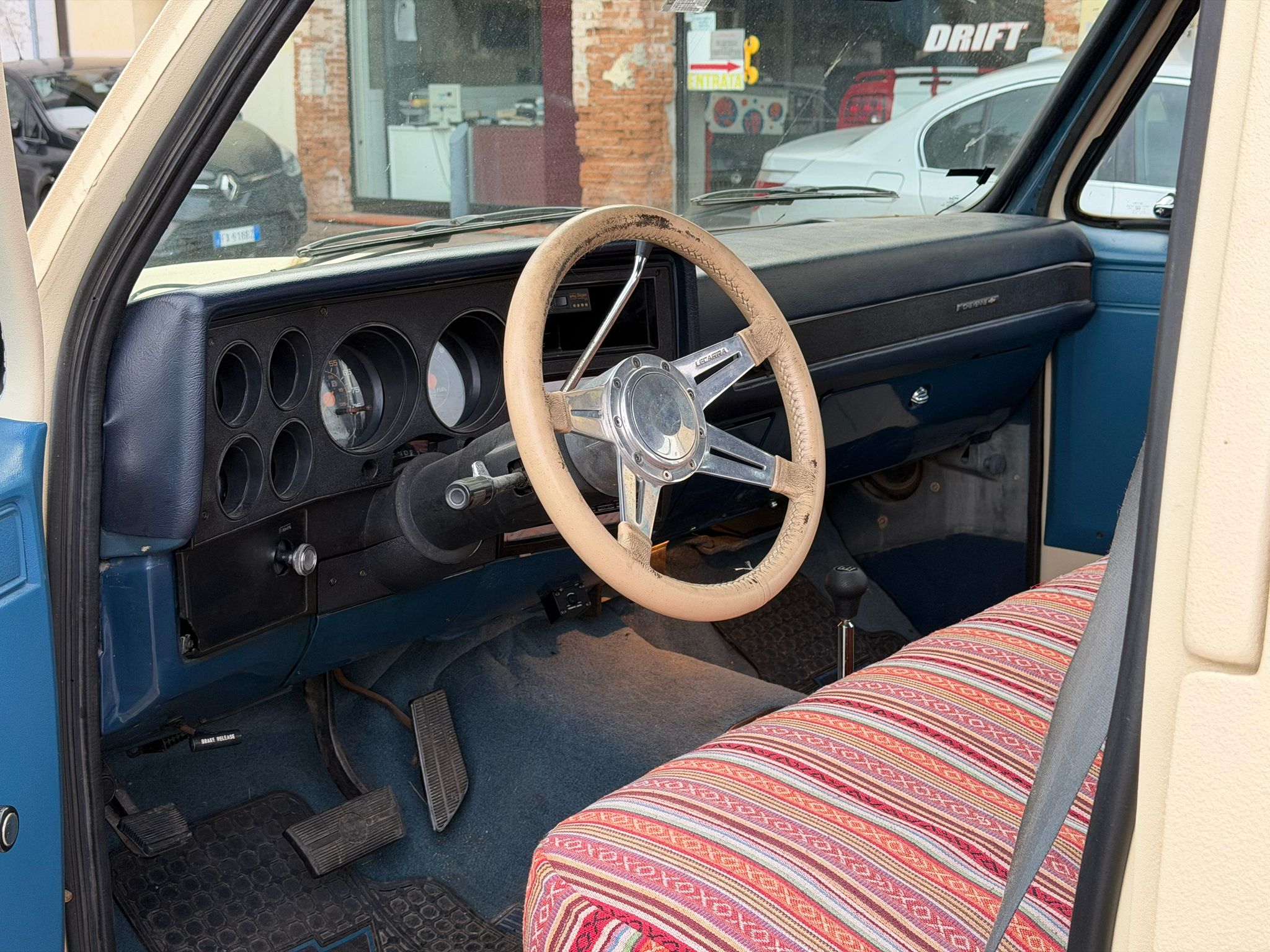 Interni blu in pelle con coprisedili come da foto