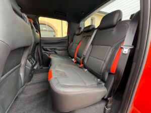 Interni neri in pelle con inserti in alcantara, arancioni e cuciture arancioni