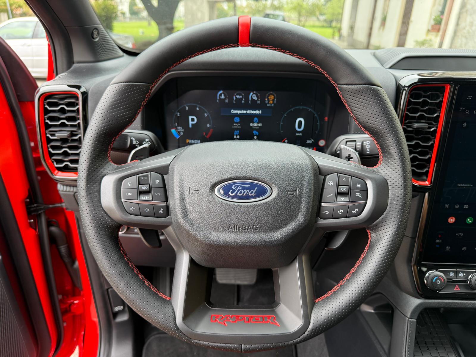 Volante sportivo Raptor in pelle multifunzione con comandi al volante per radio/media, computer di bordo e assistenza alla guida